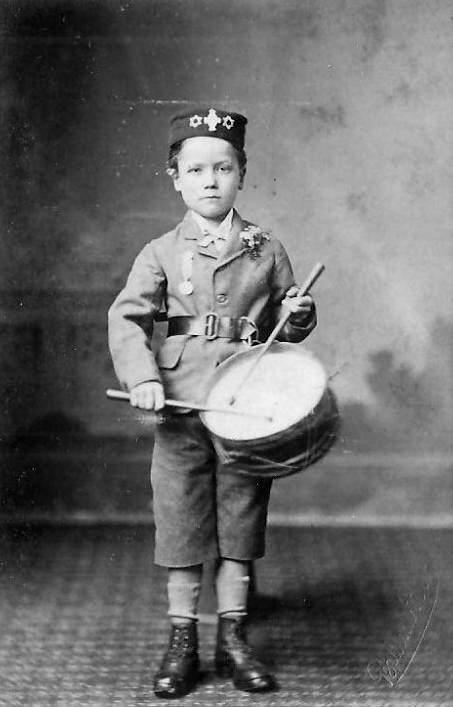 Pill box caps were a military style that appeared in the mid-19th century. We believe that they were worn by sime boys. We do not see many boys wearing them, but our 19th century English archive is limited. W are not entireky sure about the chronology, but believe they were primarily worn wduring the mid- and late-19th century. Some seem to have orgabizational connections. The most obvious here are Boy' Brigade uniforms that appeared in the late-19th century. As far as we know, no schools adopted them as part of the uniform. The only 20th century examples we have found have been with Boys' Brigade uniforms.
