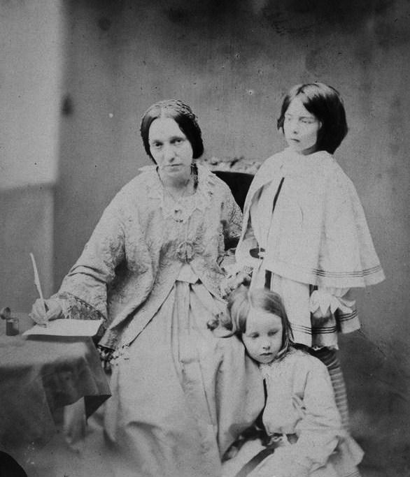 We note a lot of illustrations suggesting children wore striped long stockings in the mid-19th century. We do not note striped stockings in paintings during the early-19th century. Long pants and white hiosiery seem common, but when shortened-length pants appeared we do not see many striped stockings. A factor here may be that iot is tedioys to paint striped stockings, so there was an enducemrnt to verge away from relaism if striped stockings were worn. Many of the illustratios come from English sources . We were a little surprised by this because our archive of American images does not how this fashion in the 1840s and 50s and in the 60s we mostly see white long stockings. As there are few English Dags and Ambros, we are unable to assess hosiery trends at mid-century with any validity during the 1850s and very early-60s. We do note a Lewis Carol portrait of the Cameron boys (late-1850s). The older boy, charles, is wearing striped long stockings with some kind of a skirted outfit (figure 1). We do begin to see large numbers of portraits with the appearance of the CDV (1860s). We see more boys with striped stockings in the 1870s. We do not, however, see large numbers of children wearing striped long stockings. This may reflect our still limited 19th century archive. So this is a topic we are still developing. We are not yet sure about the 1880s, but we no longer see striped stockings in the 1890s.