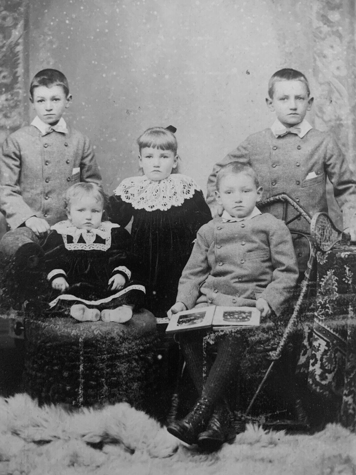 Almost all of these collar buttoning jckets are cut short with instead of lapels, a single vertical column of buttons like the boy on the previous pasge. There were a range of stylistic differences, but the basic chracterustic was a a short jacket, collar button, and sinfgle vertical coumn of buttons. There may or may not be pockets. The suit the boy here iswearung does not seem to have any pockets. Some may have had collars, but thus is hard to tell, because they were commonly worn with large detachable collars covering up the top of the jacket. We note one example of the jacket done with double button collums looking like a double-breasted jacket (figure 1). This as far as we can tell not very common even though double-breasted styling was very popular in the late-19th century. It is the only such example we have found. We have not yet found an American example. We are not sure how to date it. The dealer suggests the late-1880s.