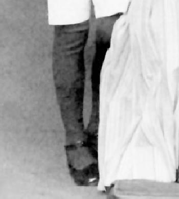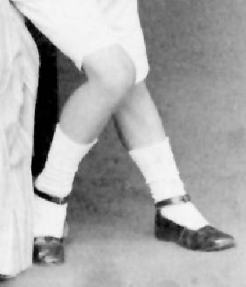 The younger brother wears three-quarter white socks with strap shoes. It is interesting that the hosiery was differnt, but that th shoies are identical. e believe that the major factor her is that it was considered acceptable for a very young boy to wear short socks with kneepants or short pants, but not for an older boy.