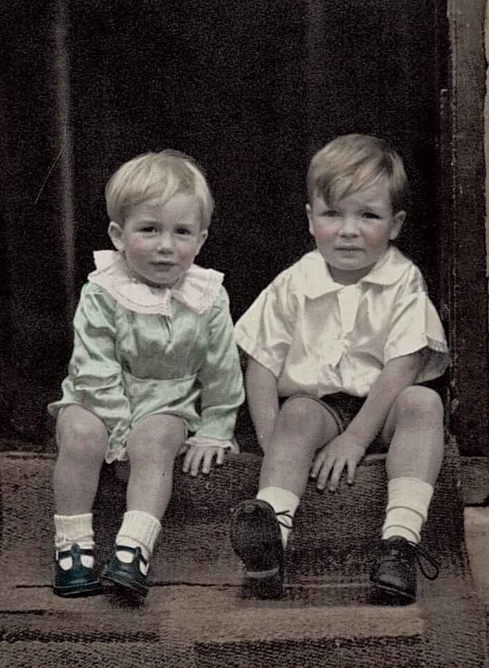 Our reader tells us, "This is a photograph of me on the left and my brother. It was taken during the early-1940s in England. I think my mum wanted a little girl. She certainly dressed me up in fancy clothes, for those days. Here we are done up for a wedding, but I don't remember much about it as I was so young. Notice my lace-trimmed ruffled collar." Well you know Colin, mums have all kinds of ideas. Some rather enjoyed dressing younger children up just as little girls like to play by dressing their dolls. This was more prevalent in the 19th century before boys' fashion conventions became more standardized. In the case here, the boys' wedding outfits seem fairly standard for a formal wedding.