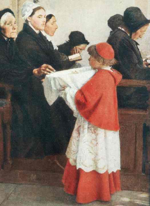 Religion has palyed a major role in France's history and the lives of its people. The importance of religion and churchl attendance has declined significantly in France. Even so so, religion is still an important force in France, especially in the lives of children. There were clothing costumes and fashion styles associated with many of the roles that boys played which have varied over time. Only the garments worn by altar boys have remained relative stable. Many French boys have served as altar boys. It is a considerable honor for a boy to be chosen to assist the priests with the mass. Boys for this duty are costumed like the priests. The Church has been the primary force behind the organization of boys choirs. Many countries of Western and Central Europe have a long tradition of church boys' choirs dating back to the medevil era. One of the longest traditions is that of the French boy choirs. The Roman Catholic Church has also palyed a key role in French education. We note French children wearing uniforms at many Catholic schools, but we are not entirely sure about the chronology of this. Many French boys remember taking Communion. It was a major event in their lives. Most French boys have a First Communion which is a major event in their lives. French boys like American boys used to get dressed up in new suits or fancy outfits for their First Communion. Important French holiday are religious festivals. The two most important are Easter and Christamas. Of course the miosr important holiday for children--Christmas. Another important religious festival in France is Easter. We do not have much information about French weddings. France of course is a Catholic country and the wedding traditions ar Catholic. Even so I believe many poor people did not marry formally before the Revolution (1789). A strong anticlerical trend developed with the Revolution which was moving toward a kind secular religion.