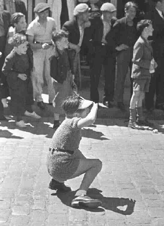 short pants by the l930s for little boys could be quite short. Older boys wore them longer, but generally shorter than in England--often well above the knees, and not as baggy. Younger boys might wear short pants all year round, including the winter--but with knee socks. Some mothers might buy long pants for winter wear. Most boys, however, mostly wore shorts. Short pants were especially common in the summer. Boys who might have worn long pants to school might wear shorts in the summer, usually without kneesocks. At the time, French boys did not wear jeans. Thus a comfortable, cassual style of long pants did not exist. This made it more common for older boys to wear summer shorts. I'm not sure what the boys thought of wearing short pants. AS so many boys wore shorts, they probably did not think about it much. They may have preffered longs in the cold winter months. Older boys probably began to want longs. I'm not sure at just what age boys wore shorts, but it appears that most boys wore short pants through at least 13 and then gradualy began shifting to longs. There were still a lot of boys waring shorts