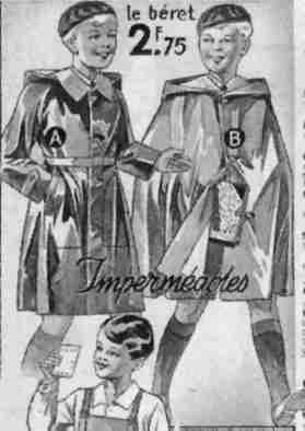 French boys in the 1930s mostly wore short pants or knickers and kneesocks. Older boys wore knickers, especially during the colder winter weather. Smocks were still commonly worn to school. French boys also wore a distinctive cloak garment in the winter. Berets were also still widely worn. Some readers have noted major changes in boys' fashions firing the mid-1930s.