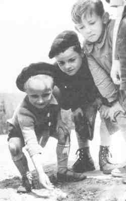 Figure 3.--French boys in the 1940s and early 1950s still commonly wore berets. Notice that this photograph taken during the fall or winter shows the boys still wearing short pants under their coats. |