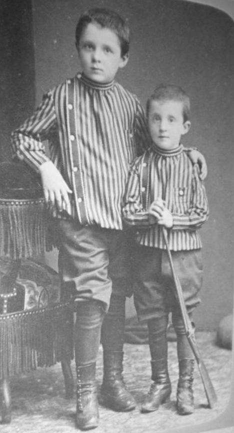 We have just begun gto build our chronology of French short like-pgarments. We ahve no infotmation agt this gtime on the early-19th century. Only with the advent of photography do we begin to see waht kinf of shirt-like garments French boys were wearing. Commercial photography was invented in France by Louis Daguerre (1839). Unfortunately we do not see many examples of French Daguerrotypes (1840s-50s). Thus makes it difficult to assess French trends at mid-century. We do have a lot of Americans Dags and Ambros from this period. And we see a lot of boys wearing long-sleeved blouses without jackets. Whether this trend was also common in France we do not know. We note some fashions were shared in the major European countries and America. This is somthing we are just beginning to assess. Only with the CDV do we begin to see large numbers of images in France and other European countries (1860s). Only many of the boys in the formal studio portait of the day are wearing jackers, making it sufficult ti see the shirts and blouses which they are wearing underneath. his is especially true because collar-buttoning suit jackets were popular for boys. We are beginning to acquire some images. We note some boys wearing blouses. We note some that lokk to be dome like tucked in tunic. We note bothers wearing striped tunic-look blouses (1870s). French boys began wearing smocks to school (1870s). This further complicates our assessment. Unlike Italian boys, French boys generally wore their shirt collars under ther smocks. We believe at this time that French shirts and blouses were similatr to those in America and Britain. We note Fauntlroy blouses (1880s and 90s). They wee not as elaborate or as popular as in America, but we do see them. We also see Eton collar, but these were mostly detachable collars, not Eton blouses. And they wee not ascommon as in Britain. After World War I we begin to see younger boys wearing fancy blouses, some with short slleves and even puffed slaeave bloss. This continued into the 1950s after World War II.
