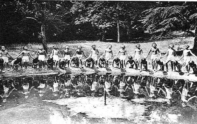 French and Belgian children in the 20th century, especially after World War I, were dressed in way to be practical, easy to wash, and with a beautifull juvenile touch. It should be noted that French mothers until after World War II for the most part did not have modern conveniences like washing machines. The urban working class and peole in rural areas oiften did not even have indoor pluming making washing clothes a major concern of mist mothers. Boys thus commonly wore short pants outfits. Younger boys commonly woire romper suits. Thus these were the clothes we see at the French health institutions for children. Many had unifoirms for the children. The younger childre might spend part of the day without any clothing. A French reader writes, "Regarding the clothing of children from Belgium, France, Switzerland, and some other European countries, the puritanism prevalebt in America was not common. In France, no one gave any attention seeing a naked litthe child, specialy the boys. It was common to see a toddler arounfd his home without his little pants. The children at Preventorium might spend several hours without clothing playing in thefresh air and sunshine. That might shock Americans, but not here. This was part of a generally more relaxed atititude toward sex that was notable in art and public entertainment. Many Amnerican servicemen during World war I were shocked to see the more relaxed attitude when the American Expeditionsl Force began arriving."