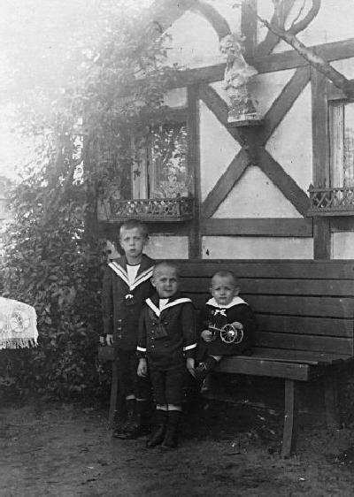 Some parents dressed their children in exactly the same styles without variations. Other parents selected the same basic style, but allowed for minor variations reflecting the child's gender or age. The children might, for example, wear the same sailor blouses, but with pants or skirts, depending on the child's gender. Or the parents might have the same basic style and make varying degrees of alterations associate with age. Younger boys for example might wear a suit with a ruffled collar or large bow. There were also many ways in which sailor suits could be altered to reflect age differences. Some parents, we presume mostly mothers, give some thought to this. I'm not sure what it meant to the boys involved. And of course for some mothers any sailor suit would do. Coordinating sailor suits mean that the suits all probably had to be bought at the same time. And even trying to buy the suits at the same time, finding the same suit in the various sizes needed was not always possible. Otherwise it would be more difficult to find the precise same styles. This became a little more common after World War I when the variations in styles became less common.