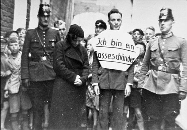 Virulent anti-Semites wanted action against Jews and Aryans having sexual relations. Julius Streicher demanded the death penalty for Jews having sexual relations with Germans. We are noit sure what he thought about the Germans involved. Hitler addressed this issue in Mein Kampf, but without specific details as to just how to define a Jew or sanctions for violations. The Germans had two terms for this: Rassenschande (race defilement/shame) and Blutschande (blood defilement/shame). Another translation is 'bastardization'. Hitler claimed that it was the cause of the preceived moral degradation of German society. As the NAZis became a major party, Hitler moderated hius public speeches somewhat. [Koonz, p. 25.] The NAZIs upon seizing power adopted a policy of racial shaming for Germans having sexual realtions with non-Aryans, especially Jews. This also extended to Blacks, although there were so few Blacks in Germany that this was a very limited action. When the NAZIs came to power, there was no agreed concept as to just how to define a Jew. This ranged fron two Jewish parents to anyone with even one-sixteenth part Jewish ancestry. Opinion varied. Some even regarded the number of intermarriages as too small to be of any real harm. Others like NAZI jurust Roland Freisler regarded the numbers irrelevant and regarded such sexual relations as 'racial treason'. [Koonz, pp. 173-74.] Freisler published a pamphlet promoting the immediate banning of all 'mixed-blood' sexual intercourse (1933). He was not just talking about Jews, but all foreigners. There was no public support for this, nor did Hitler agree. [Koonx, p.74.] Freisler's boss, Franz Gürtner, opposed it both for reasons of popular support and a range ofg problematic issues. He pointed out that there were people who did not know that they had Jewish ancestry. And this would give rise to a rash of blackmail threats.[Koonz, pp. 175-76.] Legal sanctiins were not at first possible because there was no law against it. This did not, however, prevenbt the SA from conducted extra-legal actions. Anti-miscegenation policies were a core NAZI goal. It was at first pursued informally Aryan certificate requirement. Local officials began demanding these documents before issuing marriage certificates. Systematic action, however, required a new law.