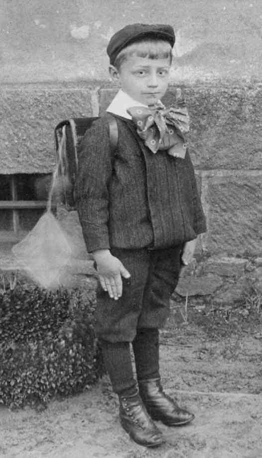 German boys didn't have to wear any special uniforms to school, so they wore what ever their parents bought for them. A Polish reader reserching boys clothes in Breslau (now a Polish city) writes, "In magazines from the 1900s there were something like Schulanzugs (clothes considered as more elegant and 'correct' to school) and sailor suits weren't popular within them." This appears to have changed in the 1910s before and during the World War I when sailor suits became more popular. [Jankowski]