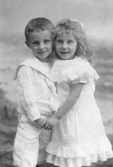 This brother and sister are unidentified (figure 1). We do know that the portrait was taken in 1904 at Bonn. Some portraits suggest that the family members were not very close. This portait I think shows that the children were very close to eacj other. They may even be twins, probably about 4 years old. The boy wears an all white sailir suit with knicker pants. The girl is also dressed in white. She wears a white dress with a wide white collar.