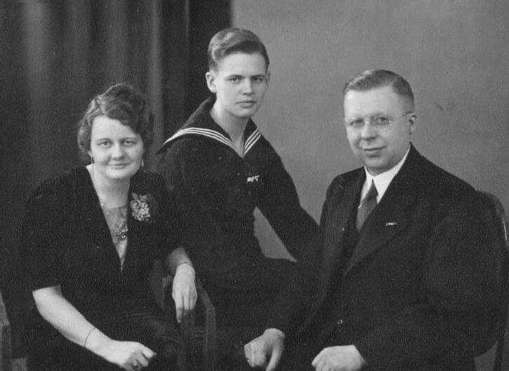 This portrait shows what looks like a prosperous, middle-class city family-- the parents and their teenage son. Unfortunately the portrair is not dated. We would say that it was taken in the early or mid-1930s, although the late-1920s is possible. A German reader agrees with thatvtime range and tends toward the early 30s. The interesting aspect of this portrait to us is that how similar the parents are dressed to American adults. This portrait could have easily been taken in the United States--except for the sailor suit the boy is wearing. American boys did wear sailor suits, but only younger boys in elementary (primary) school. Americn teenage boys did not wear sailor suits, although we see girls of all ages wearing sailor outfits.