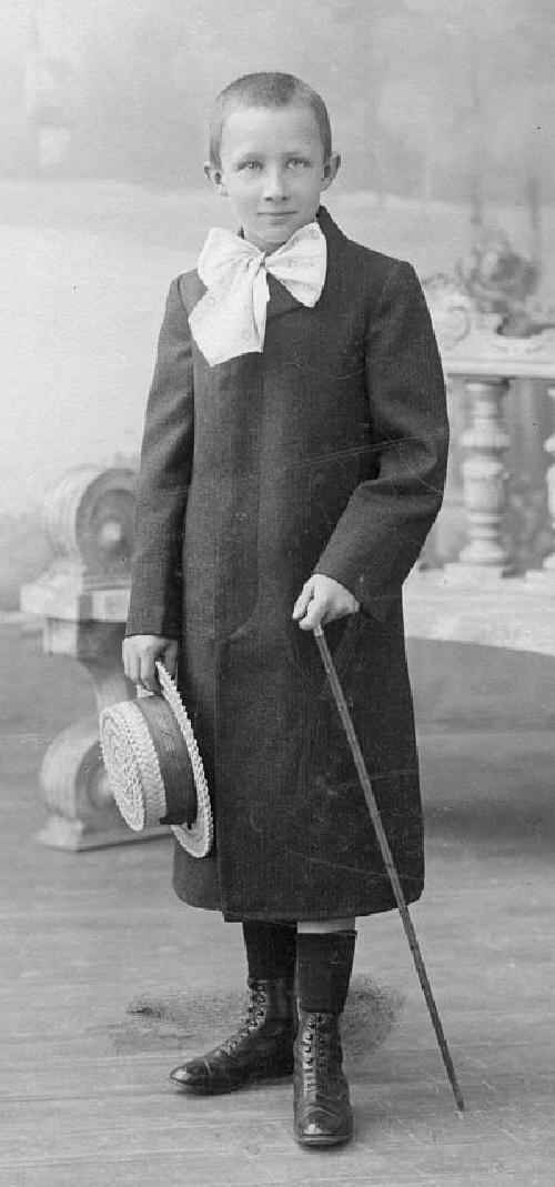We do not yet have much informtion on German rainwear. I'm not sure how common raincoats and other rainwear were. We have not noticed boys commonly wearing raincoats and we have a fairly extensive archive of German images. This probably, however, reflects the fact that parents were less likely to take photograohs when it was raining and we virtually never see studio portraits for understandable reasons. We see the same tendency in America. While we do see many images of children in winter coats, rain wear images are relatively scarce. Thus we know very little about German rain wear. A German reader tells us about the "Friesennerz" which looks somewhat like a oilskin, although it has an open front. Our knowkedge of rainwear is extremely limited so we are not sure how to classify it. We have seen similar rainwear in America.