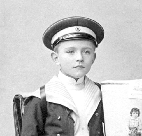 HBC had thought the origins of these caps may have been the student caps German boys wore in the 19th century. There may well have also been mikitary or other uniformed group origins. A German reader tells us, "The cap seen here looks more like a postmaster´s or railway attendant´s cap than military. But all were very similar and all of them should give the impression as if somebody very important and representative for the state is approaching you. Boys liked (and still do) to copy this for themselves."