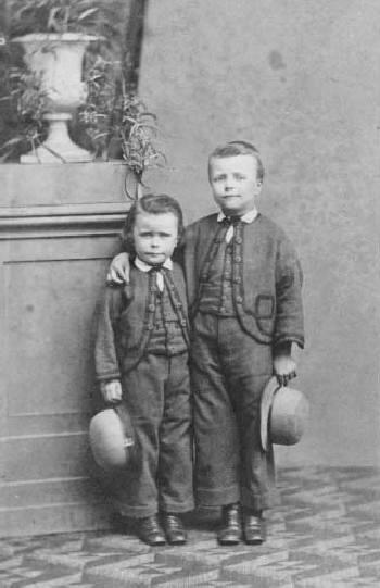 We note rounded-crown hats in the mid-19th century. The Munster brothers here were photographed in the 1860s. We note Franz Xaver Mayer photographed about 1862. We are not yet sure, however, how common they were. They may have been worn into the late-19th century, but we can not yet confirm this. This was a boy's style, primarily for school-age boy. The basic elements of these hats were a rounded crown and a narrow brim. The arch of the crown varied as did the brim.