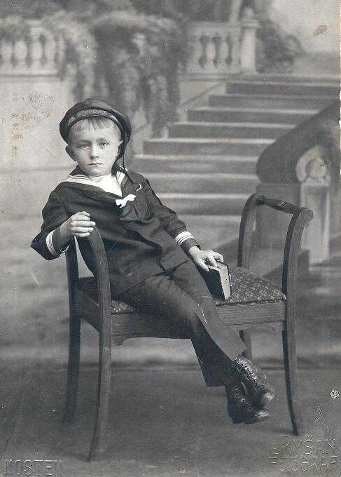 Boys did not always wear sailor style caps with sailor suits. We see many boys wearing military-style school caps. These were caps woth leather bills (brims). These caps were very common in Germany. They were not worn by all primary-school children, but were generally worn at the secondary level. There were slight variations in these capsa, but they style was remarably similar. We note them in the 19th century through the 1930s, but see few examples in the 1940s, especially after the end of the war. If it was an actual school cap it had different colored bands. The caps were worn to school, but we also see them being worn in non-school situations. They were of course worn with other outfits and were not a style sopecifically designed for a sailor suit.