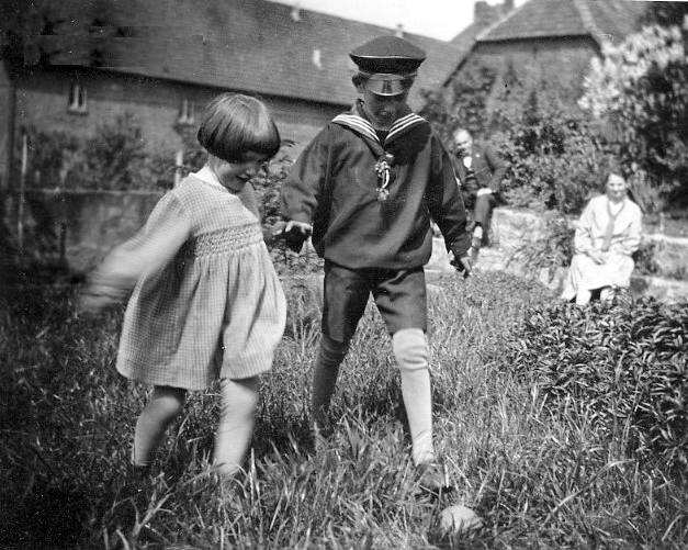 Boys did not always wear sailor style caps with sailor suits. We see many boys wearing military-style school caps. These were caps woth leather bills (brims). These caps were very common in Germany. They were not worn by all primary-school children, but were generally worn at the secondary level. There were slight variations in these caps, but they style was remarably similar. We note them in the 19th century through the 1930s, but see few examples in the 1940s, especially after the end of the war. If it was an actual school cap it had different colored bands. The caps were worn to school, but we also see them being worn in non-school situations. They were of course worn with other outfits and were not a style sopecifically designed for a sailor suit.