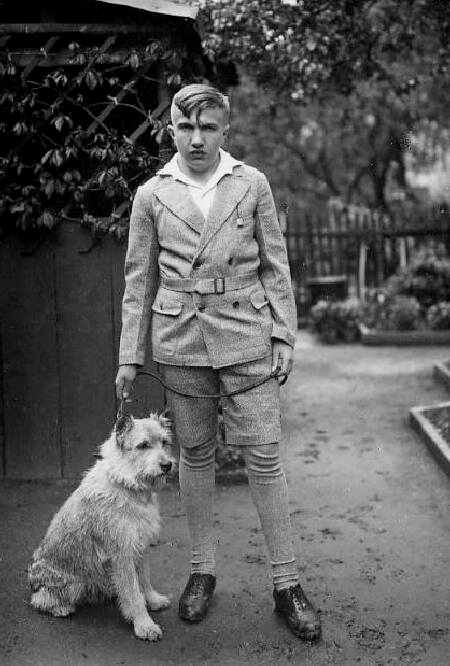 Some German boys wore long stockings at age 15 years. This varied chronologically. I am not sure about the 19th century and early 20th century. We notice that after Workd War I during the inter-war era, that many German boys wore short pants. This was very common for school-age boys and younger teenagers. Families varied as to the age boys were allowed to wear long pants. Some boys may have got long pants at age 14. Age 15 was probably more common, although quite a number of 15 year olds still wore shorts. This was not just for casual wear, but also for school and dressing up. We can tell, for example, the German boy here in 1933 is not wearing long stockings on a cold day (figure 1). Rather the foliage suggests the photograoh was taken during the summer. We think most 15 year olds wore knee socks with shorts, but some did wear long stockings. We think this may have been more for formality than warmth, but we are not entirely sure. Some German boys at 15 years of age worn knickers in the inter-war era. I am not sure at this time whether they wore knee socks or long stockings with knickers.