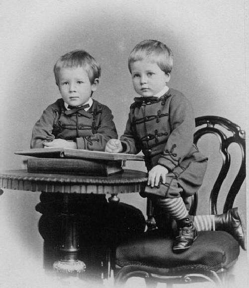 We know that some Germany boys wore patterened long stockings, but we are not yet sure anout the precise chronology. We have very few images of German boys wearing patterened long stockings in the 19th century, but that probably reflects our reltively limited archive. Even so, our axcghive is substantial enough that we can see thst patterened long stockings were not as common a plain colored stockings. We have no information at this time on the mid-19th century. We assume that boys wore stripped stockings in the late-19th century (1870s abnd 80s), but have not found many German images to confirm this. These were fairly common in many other countris. Striped stockings seem the most common, but we notice some other patterns as well. We are not sure about the 1860s, but we know that stripped stockings were quite common in the 1870s. A good example here is Hermann and Otto, two boys from Bremen in 1873 (figure 1). We also mote examples from the 1880s. We are less sure aboutg the 1890s.