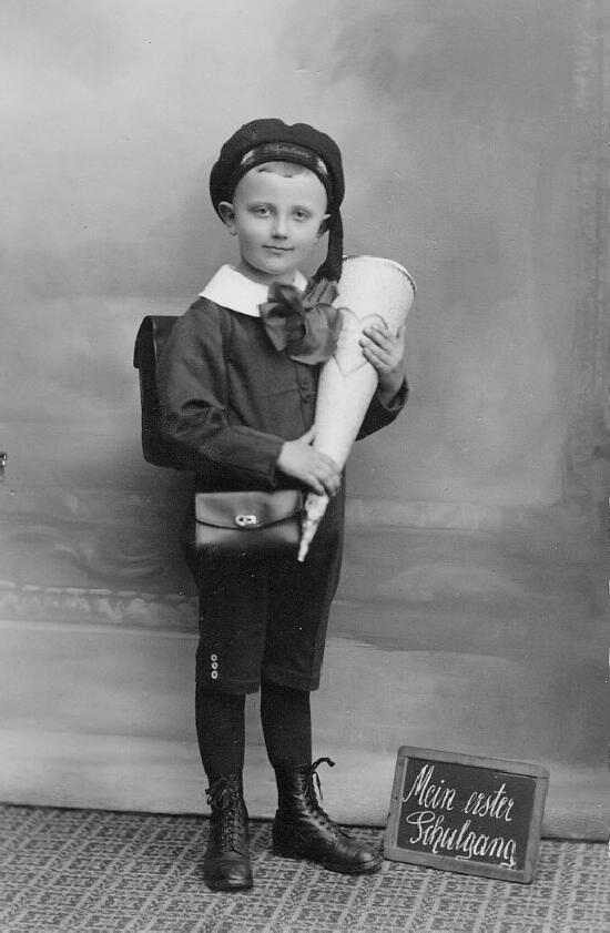 Long pants seem quite common in Grmany duting the late 19th century, but knee pants by the 1890s were increasingly common for boys. Most of the images we have found show primary school-age boys and younger teenagers wearing them. Most German boys begin school at age 6 years. Many of the images we have found of boys on their first day of school during the late 19th and early 20th century show boys wearing knee pants to school for their first day. They were worn with quite a variety of different outfits. Most boys during this period wore knee pants with long stockings.
