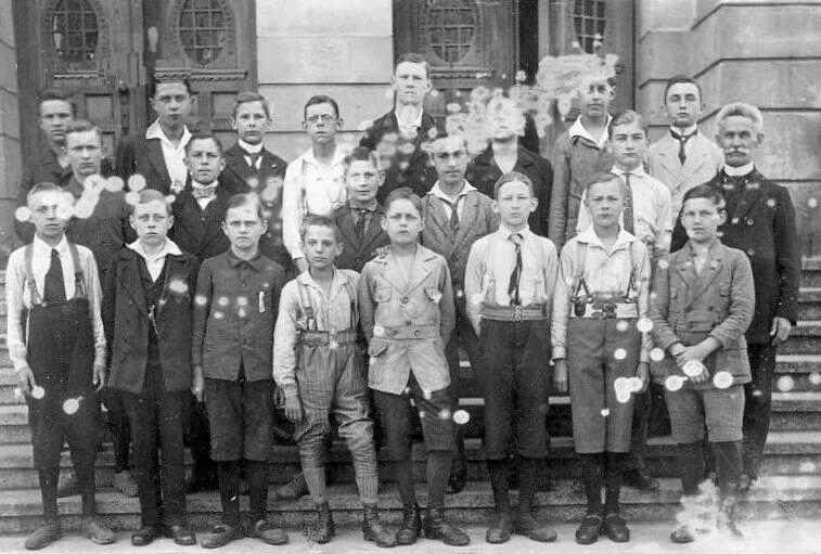 Most German boys wore long stockings with knee pants. This is because the popularity of knee pants and long stockings overlapped. Knee pants were most pronounced when long stockings were commonly worn. While knee pants appeared at mid-century, they did not become common for older boys until the 1890s. we have noted wearing kneepants in the mid-19th century wore long stockings, although because the kneepants were often quite long, it is difficult to assess the length of the stockings. We simply do not know how long the stockings were in many 19th century portraits. It is likely that at least some boys of the yonger boys weating long pants also wore long stockings, but this e can not yet substantiate. We notice white and stripped stockings at the time. We assume the boys were wearing long stockings, but given the long length of the kneepants, the stockings did not need to be very long. By the turn of the 20th century we can see boys weating both socks and stockings. Hosiery becomes more pronounced in the 20th century, but the popularity of knee pants declined sharply after World War I.