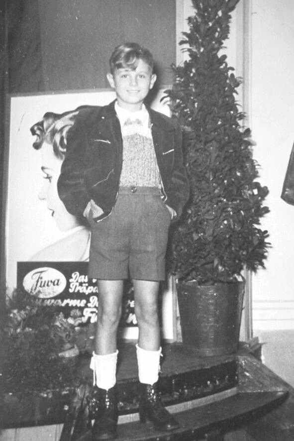 We first note short pants suits in the 1920s after World War I. Actually early short pants and kneepants suits were quite similar in that short pants at the time were only sligtly shorter than keepants. Short pants did not have the three button trim at the leg hem. In the United States and Britain the destinction between short pants and kneepants was more obvious because short pants were generally worn with kneesocks and kneepants with long stockings. This destinction was less useful in Germany where long stockings were much more common. Short pants suits were very common for boys in the 1930s, although the increasing importance of the Hitler Youth program there was somewhat less need for suits. (One effort of the HJ for example was to discourage family church attendance.) Boys often wore short pants suits to about age 14 when they began wearing knicker or longpants suits. This varies somewhat from family to family and some boys wore short pants suits beyond age 14. After World War II, Gemany was in a terrible state and few families had much money for clothing. Many German boys continued wearing their suits after they had rather grown out of them. Many boys srill wore short pants suits in the 1950s, often with sports shirts or with an open collar. Catholic boys common woreshort pants suits earily for their First Communions. By the 1960s, boys were increasingly wearing long pants suits, although suits were being worn less than before as German boys increasingly turned to more casual fashions. Boys over time wore different kinds of hosiery with short pants suits.