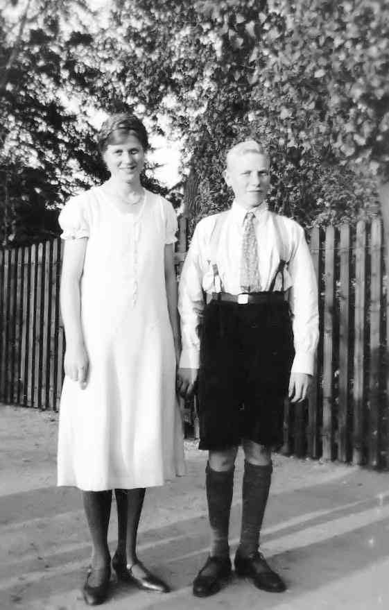 Belts seem especially common for German boys by the 1930s. Lederhosen with halters were worn in the 19th century, but not so commonly by boys. We see many boys wearing them in the 1930s. Belts do not appear to have been very common until after World War I. We see both belys and suspebnders in the 1920s, but suspenders seem to hve been more common. This seems to have shifted in the 1930s. Again we see both belts and suspenders in the 930s, but now belts seem more common--especially by the late 1930s. Here the Hitler Youth may have been a factor in popularing the belt during the 1930s. Hitler seized power (1933) and he quickly turned the Hitler Youtrh (HJ) into a mass movement. Virtually all German boys soon had to join the HJ at age 10. And the belt buckle was an important part of the uniform. Suspenders could not be worn with the HJ Youth uniform and most boys wanted the special belt buckle. We believe that boys who wore belts as part of theor HJ uniform would have wanted to wear belts with other outfits as well. We note many yoinger boys wearing H-bar shorts and to a lesser extent suspender shorts. Many younger boys had H-bar suspension shorts tht were not Lederhosen. We note some button-on styling, but not as many as in the 1920s. The belt by the end of the decadec seems to have emerged as the main trouser suspension device.