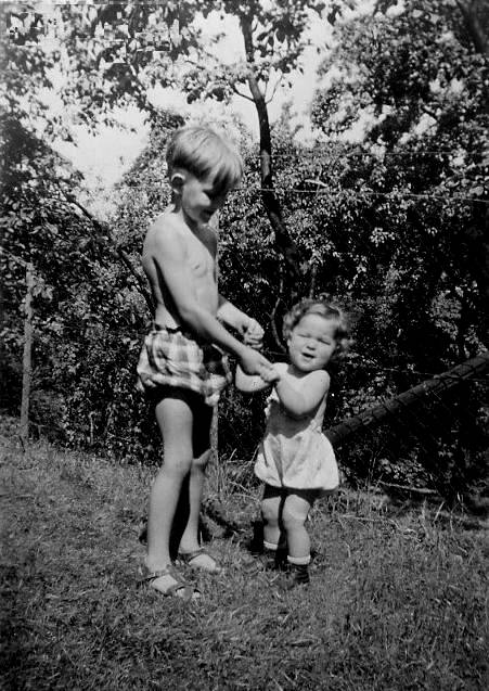 We also notice German boys wearing romper pants without any strap suspension. Perhaps some had elasticized waists. These were not nearly as common as the romper pants with strap suspension. We do not find very many of these plain romper pants in the photographic records, but we do see a few examples. Th Most seem to date to the 1940s or perhaps the early-50s. These plain romper pants seem to be almost entirely outdoor summer play outfits. The romper pants with suspender straps could be both play garments and deressier garments. The plain romper pants as far as we can tell were strictly a play garment.