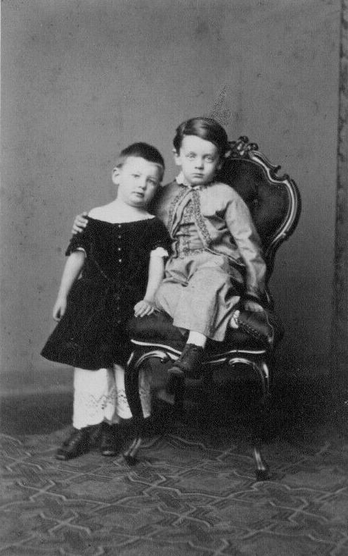 Avaialble information shows that German boys were wearing dresses in the mid-19th century. We do not, however, have sufficent images to assess whether this widely practiced custom in Europe differed in Germany to any appreciable extent. With the invention of photography (1839) much more information becomes available on fashion, but not immediately in Germany. Germany was not a leader in photography at this early stage, despite its subsequent involvement. We do not yet have any German examples of early photographic types like Dags and Ambros among others. Some undoubably exist, but they are less common than in Britain and France and especially America. We begin to see more photographic images with the popularity of CDVs (1860s). We note an early CDV, certainly from the 1860s, with two Flensburg siblings. The boy wears a very simple black dress (fugure 1). Note the short hair.