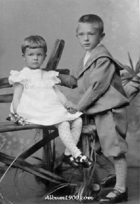 Young German boys like boys in other European countries wore dresses. In the early and mid-19th century, these dresses were just like the ones their sister's wore, although before mid-century abd the advent of photography we have few actual examples to study. HBC has only limited information on this fashion convention in Germany. We do not yet have enough information for a detailed assessment. We have a substntial German archive, but primarily from the 20th century by which time this convention had largely wained. We do know that younger German boys did wear dresses and other skirted gatments. An 1838 portrait shows a brother and sister wearing the same dress style. HBC has also noted the future Kaiser Wilhelm II about 1860 wearing a dress. What we do not fully understand is prevalence. Out preliminary assessment is that the convention of dressing younger German boys in dresses was less pronounced than in many other European countries.