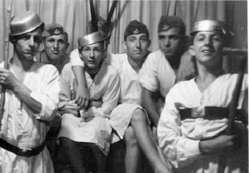 Nightshirts were worn by boys and girls in the 19th century. Pajamas rapidly replace nightshirts during the early 20th centry in America and Britain. This does not seem to be nearly as common on the Continent. We see German boys wearing nightshirts commonly in the 1930s. Here we see RAD boys wearing nightshirts in their dormitories (figure 1). This was probably before World War II. We believe that nightshirts were more common than pajamas before the War. Wesee several images of children wearing them in the 1940s. After the War by the 1950s, pajamas had becone more common, but nightsirts were still worn. We note a 1953 German catalog with a page on sleepwear that offered nightshirts. We note a advertisemnt for a bathrobe and the boy does not appear to be wearing pajamas in a1955 catalog. A British reader tells us that the German boy in a family he stayed with during the 1960s wore a nightshirt.