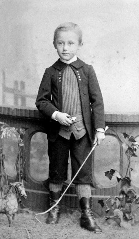 Cut-away jackets were most commonly done as suits. As with most suits, the name of the suit derives primarily from the style of the jacket. Many were three-piece suits with vests. They were worn both with and without vests. The three-piece suit vest option seems to have been the most common. Many of the cut-away jacket suits were three-piece suits made with matching or coordinted vests. There was When worn with vests the blouse was covered up except for the collar and the sleeve cuffs as in the outfit here (figure 1). You can hardly see the vest here. A Bremen boy wears a cut-away jacket showing more of the vest. Most were done with shortened-length pants, with knee pants or knickers. We note some Germany boys wearing very long-length pants. The boy here is a good example (figure 1). In many cases these suits were done with ankle-length pants. Shorter-length pants, often knee-length bloomer knickers, were much more common in other countries.