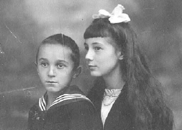 Figure 1.--This German brother and sister wear typical middle class clothes and hair styles. The boy wears a sailor suit with close cropped hair. His sister has long hair and a hairbow. |