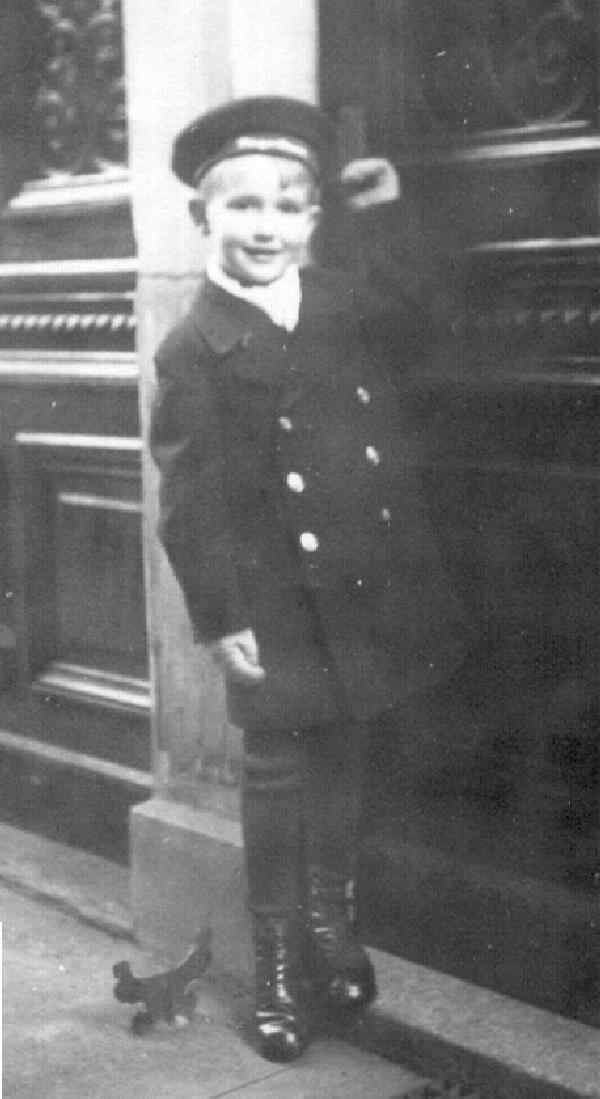 The family photographs which I have provided HBC begin at about age 2 in 1937. Pictures at 2½ year old show me sitting on a swing and riding a tricycle. At this age I had all sorts of stuffed animals--a large sable. I loved playing with them. At Christmas 1937 photograph shows me with my stable of animals. My first professional portrait was taken at about the same time. As a little boy at home I commonly wore a play dress ( Spielhöschen ).