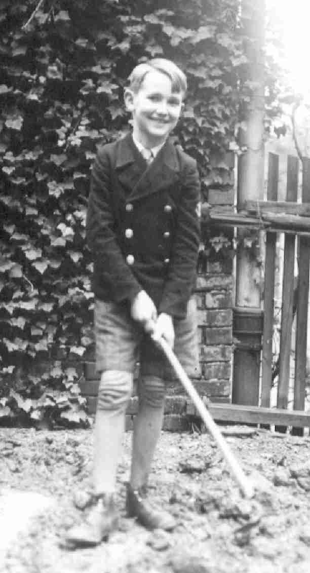 In Stuttgart our home was not destroyed. However, glass in the windows of all rooms was broken and it was very difficult to get even wooden pieces to close the windows. Shingles and wood to repair roofs were also in short supply. The streets were blocked up by debris (stones, bricks and other material) from the destroyed buildings. Very narrow paths had been cleared through the debris. were very small at all places where buildings were destroyed and stones had fallen down from the ruins. The streetcars could not operate because of all the blocked streets. We had American relatives who sent us some clothes after the War when it was almost impossible to obtain children's clothes in Germany. The Winter of 1945-46 following the War was very difficult. It was hard getting coal to heat homes. We dressed very warmly even inside. This was the last photograoh taken of me wearing short pants with long stockings (figure 1). The photograph was taken in Spring 1946. I am also wearing my heavy sailor jacket.