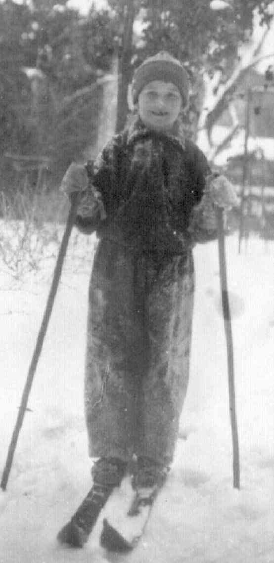 During the Winter of 1942-43 my mother managed to get some small size skies for me (figure 1). I am wearing another Traininganzug with a yellow