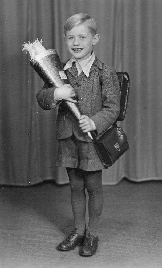 We also have acquired information on several individual boys which provide a variety of interesting insights. We see clothing becoming more informal in the 1950s. Boys no longer commonly wore suits to school. We see a range of informal clothes. Many boys wore casual shirts to school with sweaters when the weather got cooler. Boys commonly wore short pants in the early 50s. Lederhosen were popular. We see many boys wearing long pants by the late 50s, especially during the winter. Knee socks also became much less common. We also see teenagers wearing jeans by the late 50s. The German Ecoomic Miracle transformed West Germany. Money was still tight in the early r0s as a result of World War II. By the late 50s, Germans were becoming prosperous, able to afford all kinds of consumer goods, including clothes for thei children.