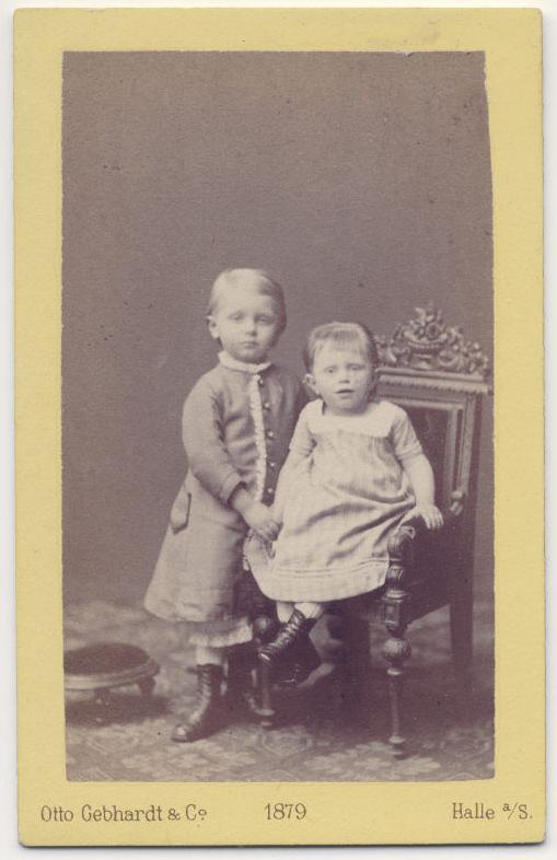 Early CDVs were done in the same style as American and British CDVs with colored ruled borders. The ruling around the image was a fairly common style for the mounts. It was an effort to provide a framing look. The ruling may have been a matter of following early French conventions. It was something new for CDVs. Other early formats (Daguerreotypes and Ambrotypes) did not have paper mounts. It was common throughout the 1860s and 70s. The ruling lines varied in width and number. The color of the ruling also varied. Red was a popular color for the rulings. The 1872 CDV on the previous page is a good example of ruling. Here we see in 1879 that the ruling has disappeared (figure 1). Red was a popular color, but in the 1870s we seemore different colors.The ruling disappeared during the 1870s. These changes varied over time and can be used to date the CDV. Our archive of dated German images is, howver. limited so we are only beginning to develop a chronology of these changes.
