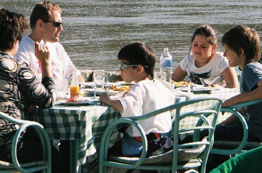 A HBC reader sends us a photograph of a Hungarian family enjoying a weekend outing. The photograph captures a pleasant family outing on a sunny Saturday afternoon. There was a sports festival that day in the city of Szeged, Hugary. The family are having a fish dinner by the River Tisza near Szeged. The children all wear trendy contemprary fashions. They wear casual sports clothes, artsy sun glasses, and bum bags. The children are wearing the same pan-European styles we began to see in the 1970s. We now since the end of the Cold War scenes of prosperous families like this throughout much of Eastern Europe. It is becoming increasingly difficult to find the former substantial differences between Eastern and Western Europe as more Eastern European countries become adjusted to membership in the European Union. Interestingly, the finances of many of these countries is sounder than several of the Western European countries.