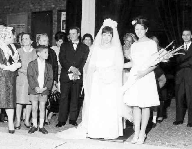 Even modest affairs often involved a procession, especially in rural villages. This custom has since World War II gradually gone out of fashion. The wedding procession ( corteo nuziale ). In some Italian villages there was the tradition of wedding parade. The bride went to church accompanied from their father. The bridegroom followed accompanied from mother-in law. We note a procession in Caprarica, in southern Italy near Bari, in 1950s or early 1960s. It is a goof example of a wedding procession. It was summertime. At the sides of parade there are village children in their "casual" clothing. Usually they are barefoot; someone just in underwear. Since late 1960s this tradition has disappeared.