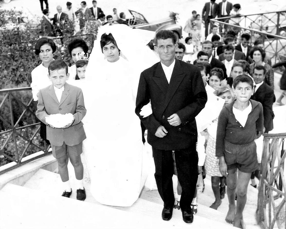 An Italian reader tels us that " the traditions for the ring bearer are similar. I remember being the ring bearer at my mother's younger brother's wedding. The tradition of flower girls was a bit different. In Italy, there were little girls with the bride, but they didn't necessarily carry flowers." We note a post-World War II ceremony. A photo shows Maria Esposito entering the church on her wedding day in Schiavonea, a village in Calabria (1967). As is traditional, she is accompanied by her father. On the left, you can see the ring bearer, and behind him, a flower girl. On the right, there is a child who is not part of the family. He was probably waiting for candy to be thrown, as was customary. The photo offers a comparison between holiday and everyday clothes. We suspect similar developments taking place in other Western European countrie to varying degrees after World War II.