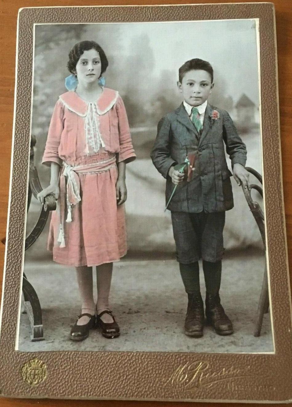 There was an interest in color photography from the very earliest phase of the development of photography. The earliest commercial step was attempts at colorizing by tunting black and white images. And we see that with all the early processes and formats. This was not a pefect sollution. Studios offered tinting ooptions. At first only minor color elements were added such as rosy cheeks and gold rings. This was common with both Dags and Ambros. There were some more elaborate efforts, but full color tinting was more common with albumen and silver nitrate studio prints. These tinted prints very widely. Some wre prints with splashes of color crudely applied. Others were beautifully done and give the impression of a color image. Such beautifully done images were expensive to produce. Actual color photography appeared in the late-19th century, but were expensive and complicated. It took more time for commercial processes to be developed. This occurred in the inter-War era (America, France, and Germany), but it was not until the post-World War II era that color photography became more reasonably priced and widely adopted and prices.
