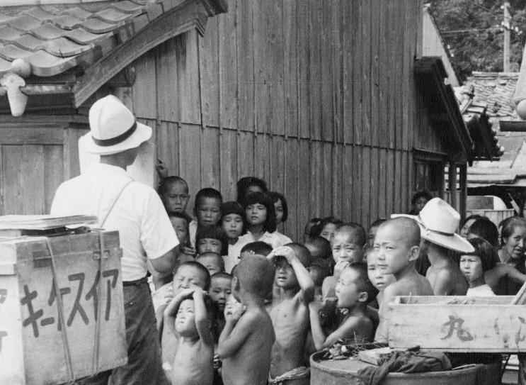 We notice a number of intersting traditional activities in Jaspan. One such tradition is a children's theater somewhat similar to Punch and Judy in the West. This is called "kamishibai", kind of theater in a box. Punch and Judy shows were a Western theatrical tradition. They did not appear in Japan. There was, however, a similar tradition in Japan. One such tradition was "kamishibai". Kamishibai is a traditional little theater. It is a wood box. In this box there is some pictures that illustrate a story. A narrator tells the story showing the pictures. I'm not sure when it first appeared. We note it still existed after World War II. A photograph from Mimase, a coatal village shows a "kamishibai" in process during the 1950s. The children were naked or wearing at the most loincloths. That was common in Japan fisher villages during summer, because children jump in and out of the sea.