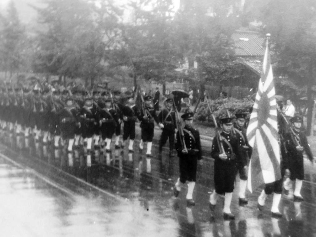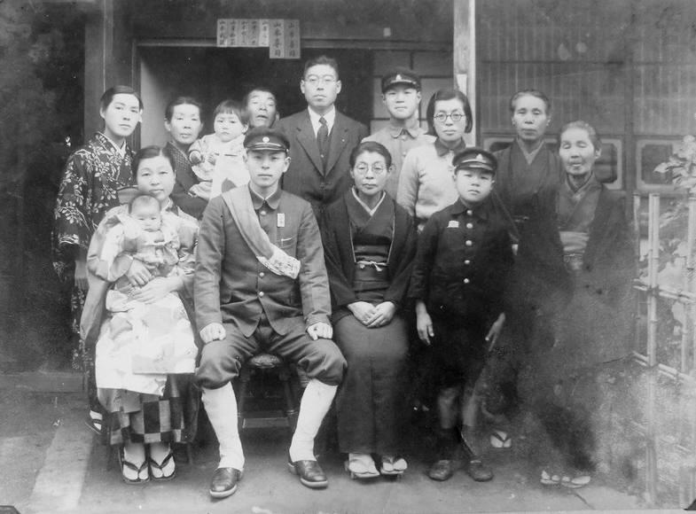 This is a portait of a midle-clas Japanese family, we belive in 1944. It was froma a photograh kept by the eldest son. He apparently enlisted in the Navy during early-1944. This of course was not the best time to enlist in the Japanese military. The youth was trained at Yokaren Naval Aviation Training School. He was in the 13th class. We thought that might mean 1943 as the facility was opened in 1930, but the dealer was sure about 1944. Numerous Yokaren-trained pilots carried out Kamikaze suiside attacks on Allied ships. One reportt suggests that about 80 percent of the graduates of the Yokaren died in battle. And most of the forces of the special attack (Kamikaze) formation in the last years of war were made up of 13th generation students. W normally only see the young men ritually drinking a cup of saki and then flying off to their death and then as they descended on the American hips, Thus glimpse of the normality of the families from which they came is fascinating. The album does not have any images of flight training, perhaps that came later. Wedo not know the name of the family or where they lived. Rgre is wruing on many pages, but we can not read it.