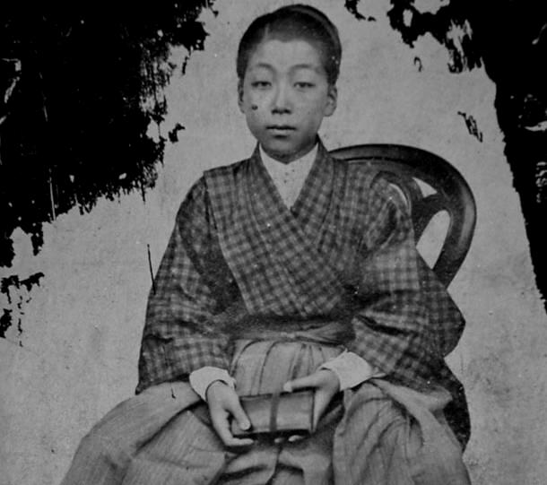 we note some boys with swept back hair.  We think that this was primarily a style for teenagers and men nd not very common for younger boys.  Here we still assessing this style, but we have not yet found many exmples in the photographic record.  We are not yet sure about the 19th century s our archive is still limied.  Mny biys ha ckise0cripped hair, but we re not sure how commin this was in the 19th century.  We know that close-cropped hair was very common in the early-20th century so few boys anbd schoo-age would have had this style.  Our limited 19th century archive means that we can not fully assess this style, especially because we have virtually no images from the early- and mid-19th centyry.  We do note one young teenager with swept-back hair in the 1880s.  This may have been a traditional style,perhaps worn by well-to-do boys who were tutored at home and did not attend school.   The young teen-ager here Okuda Michitaro (figure 1).  At least in the 19th century there may have been a bun in the back.  We see European boys with swpt back hair, but of course not with a bun or pigtail in back, at least by the 19th century.