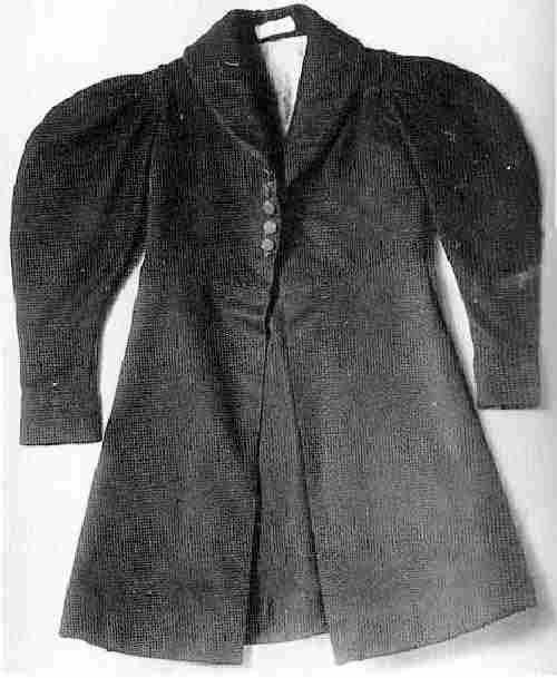 HBC at this time has limited information on the types of coats worn by Dutch boys. There do not appear to be any clarly definitive Dutch coat styles, but rather Dutch boys have worn styles developed in neighbiring countries. One image shows a coat reportedly worn in the 1860s that looks rather like styles worn in England during the early Victorian era. The garment is notable for the high placement and narrow spacing of the buttons and the very full blouced out shoulders.