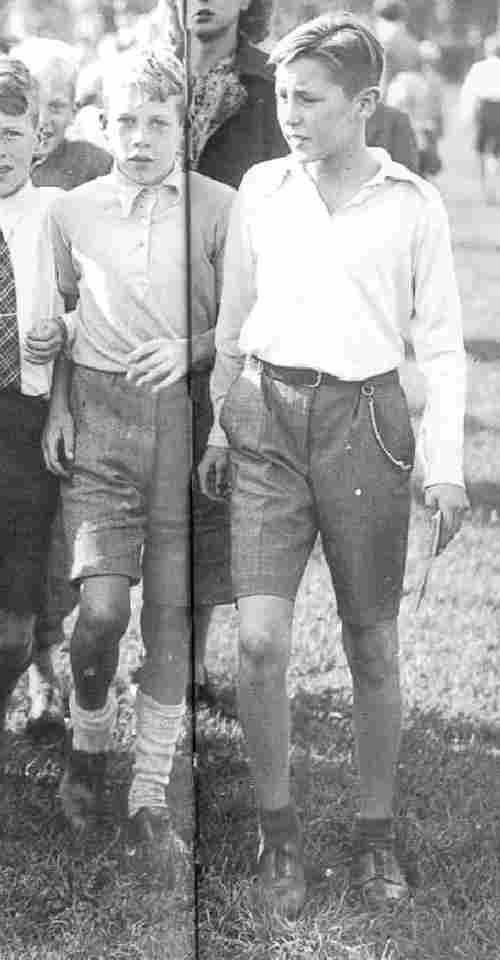 Figure 1.--Most Dutch boys in the 1930s and 40s wore long sleeved white shirts. Note the one boy here in 1943 wearing a casual short sleve shirt with Rugby styling--rather like a polo shirt. |