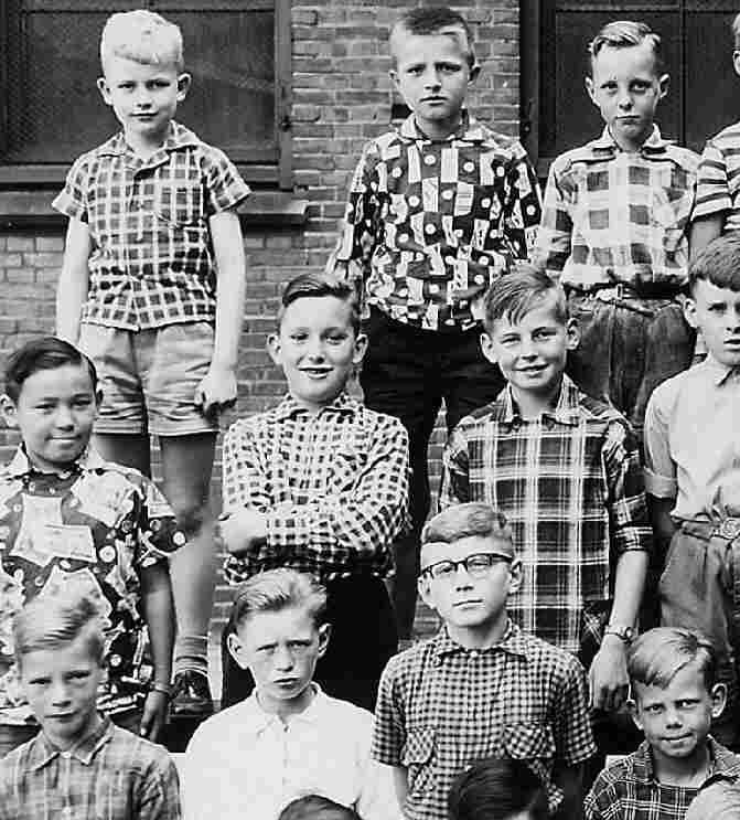 One style we note that was populkar in the mid- and late-1950s was a shirt without the normal neck opening, nit rather that butoned straight across the throat. I believe these were called Chinese collars in the United States, I'm not sure what they were called in the Netherlands. The style in the United States was of limited popularity. Here we note about five boys in a 1957 class photo wearing this style of collar. This suggests considerable popularity. The Dutch Chinese collar shirts seem done in particularly bright patterns.
