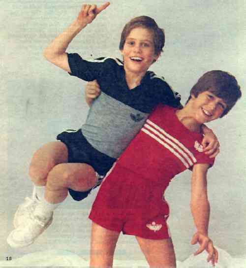 ![]() Figure 1.--THese boys are wearing the athletic-styled casual clothing that became so popular in the 1980s. |