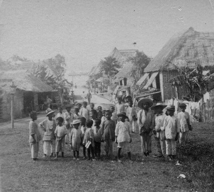 The everyday clothing worn by Filipino boys into the early-20th century was very similar to compesino (peon) clothing of Latin America, again reflecting their common Hispanic heritage. This meant straw hats, white shirts, white pants, barefeet or sandals. Hat styles seem a little more varied than in Latin America. In remote areas there were indigenous tribal people wearing traditional clothing. momg the Hispanisized population, especilly the rural and village people this capesino clothing was very common. And while most of the decade was under Spanish rule. We have very little chronological informtion about the Spanish colonial era. The one decade we know about is the 1890s. This is because of the Spanish-American War and the arrival of the Americans (1898-99). Suddenly with the arrival of the Americans we have a very substantial photographic record. We believe photographic images from the Americans during the late 1890s and early-1900s are a good reflection of clothing styles during the 1890s. These early images before America had any substantial impact on the Philppines give us a good historical view of Filipino fashion trends during the late-Spanish era.